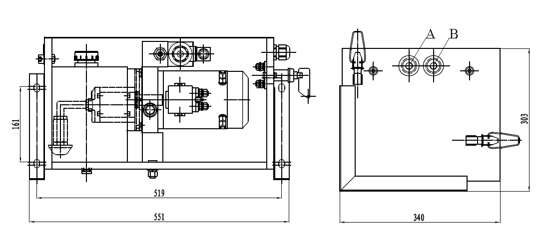此液壓動力單元由高壓齒輪泵、交流電機、多用集成塊、液壓閥、油箱等零部件有機結合為一體。為汽車尾板提供升降開閉功能箱式組合便于運輸安裝。